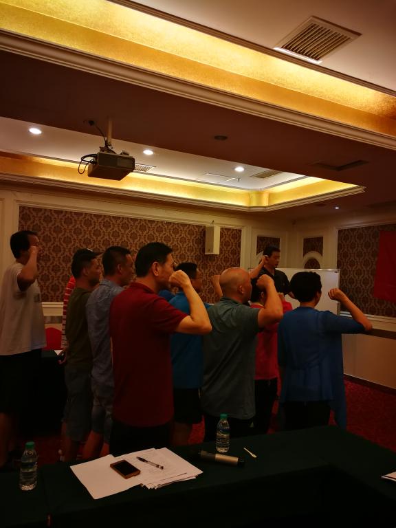 晚上,开展了重温入党誓词、上党课和知识竞赛活动。在体育课部主任叶冬茂教授的带领下,党员同志们面向党旗,不忘初心,再次宣誓,重温入党誓词。随后,体育课部党总支书记夏宣玉以“新时代,学习新思想,建功新时代”为题,生动地解答了党员同志要如何将革命精神践行到高校立德树人中来,为全体教师党员上了一堂生动党课。最后进行了“党章及党的十九大精神知识竞赛”,竞赛分为必答题和抢答题。在“抢答”环节党员同志们热情高涨,答题踊跃,把这次竞赛的氛围推向了高潮。