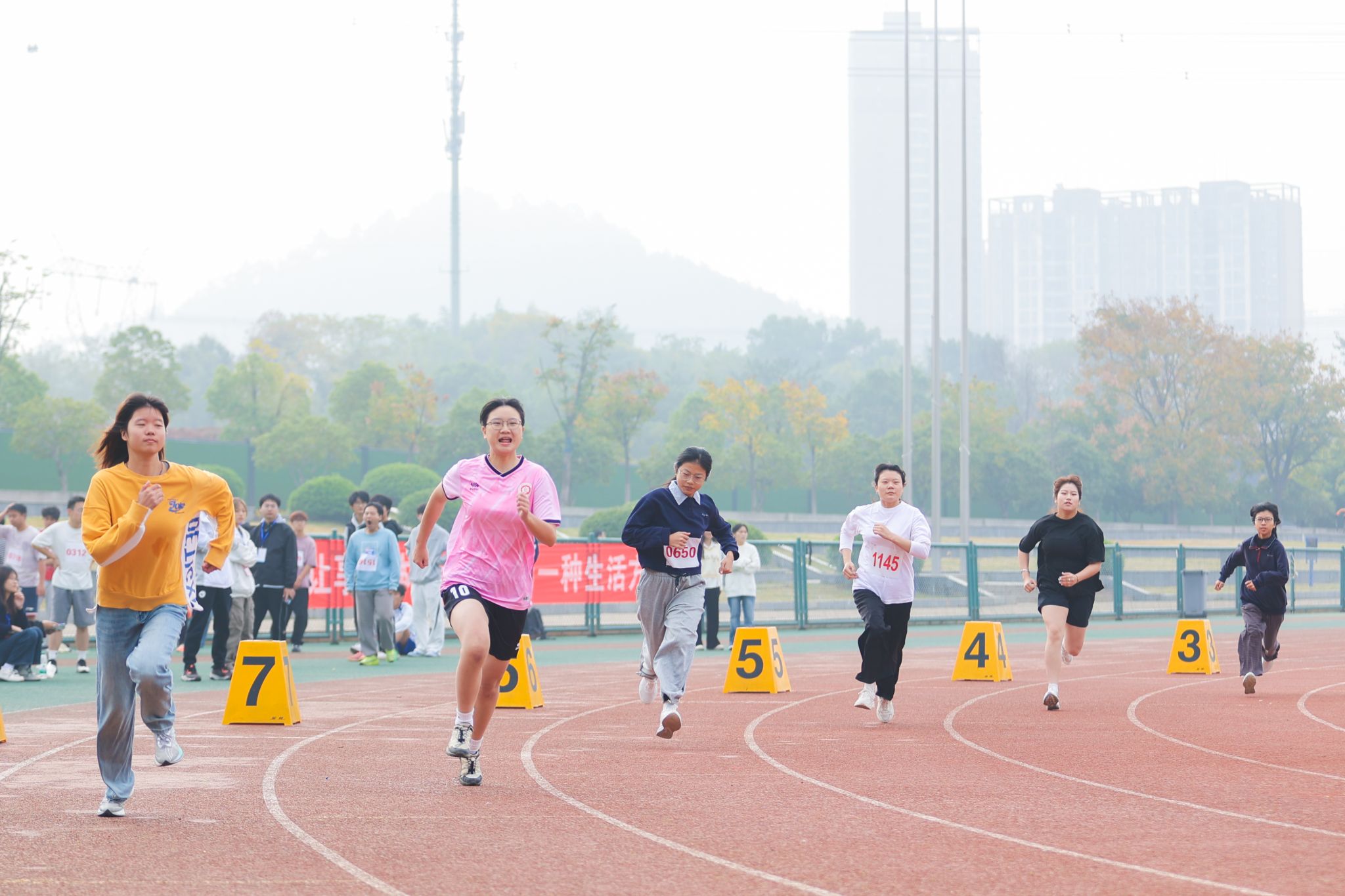 傅欣向全体师生发出三点号召:一是以体育精神奏响时代强音。希望广大学子以强健的体魄投身民族复兴伟业、投身支点建设、投身美好纺大事业,将个人的奋斗真正融入时代的交响。二是以纺织品格彰显赛场风格。要践行“韧、忍、仁”精神,赛场上要像高性能纤维般坚韧、像现代制造工艺般严谨、像纱线经纬交织般协作,用拼搏之美诠释青春之义。三是以奋斗姿态激活发展动能。要将奥林匹克精神融入学校高质量发展的血脉,积极践行“崇真尚美、笃行致远”的校训,共同谱写纺大精彩华章。