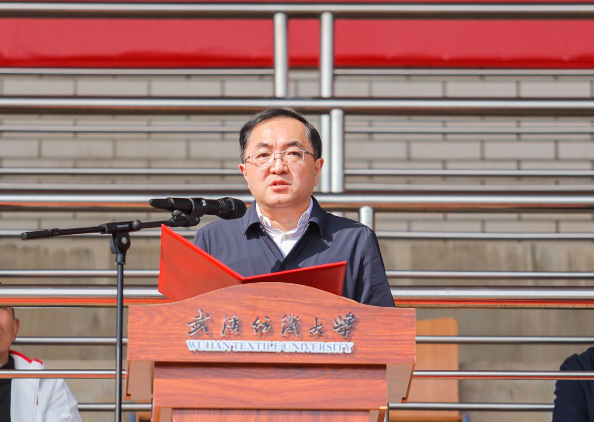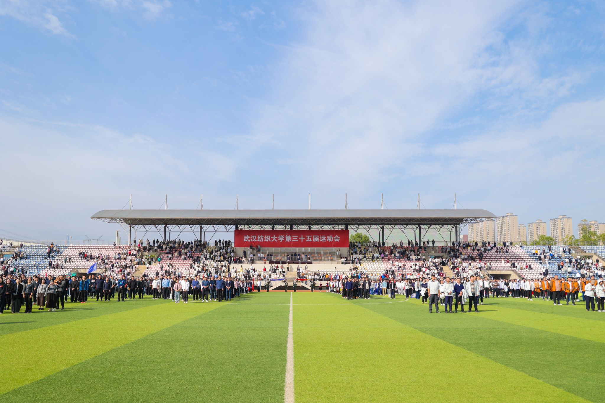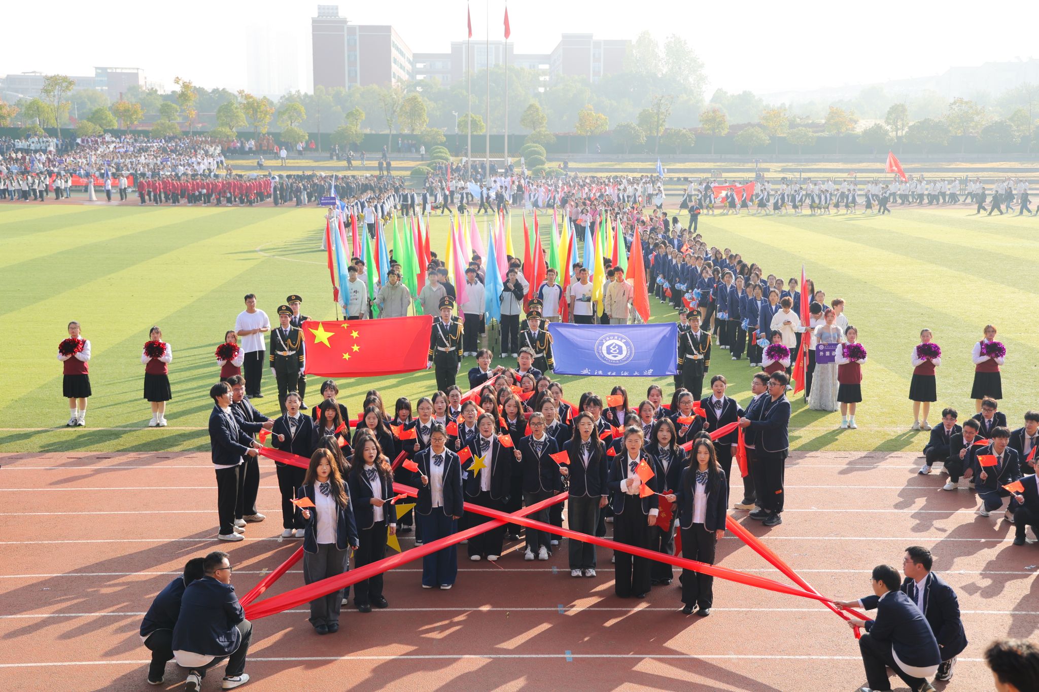 金秋织锦绣,健儿谱华章,茵茵赛场展凌云之志,赤色跑道扬青春激昂。10月31日至11月1日,武汉纺织大学第三十五届运动会在阳光校区运动场盛大启幕。31日上午,阳光洒满运动场,校领导傅欣、程碧海、姜明华、冯军出席开幕式,校体育运动委员会全体委员、各二级单位负责人、全体运动员与师生代表齐聚一堂,共同见证这一激动人心的时刻。校长傅欣致开幕词并宣布运动会开幕,副校长姜明华主持开幕式。