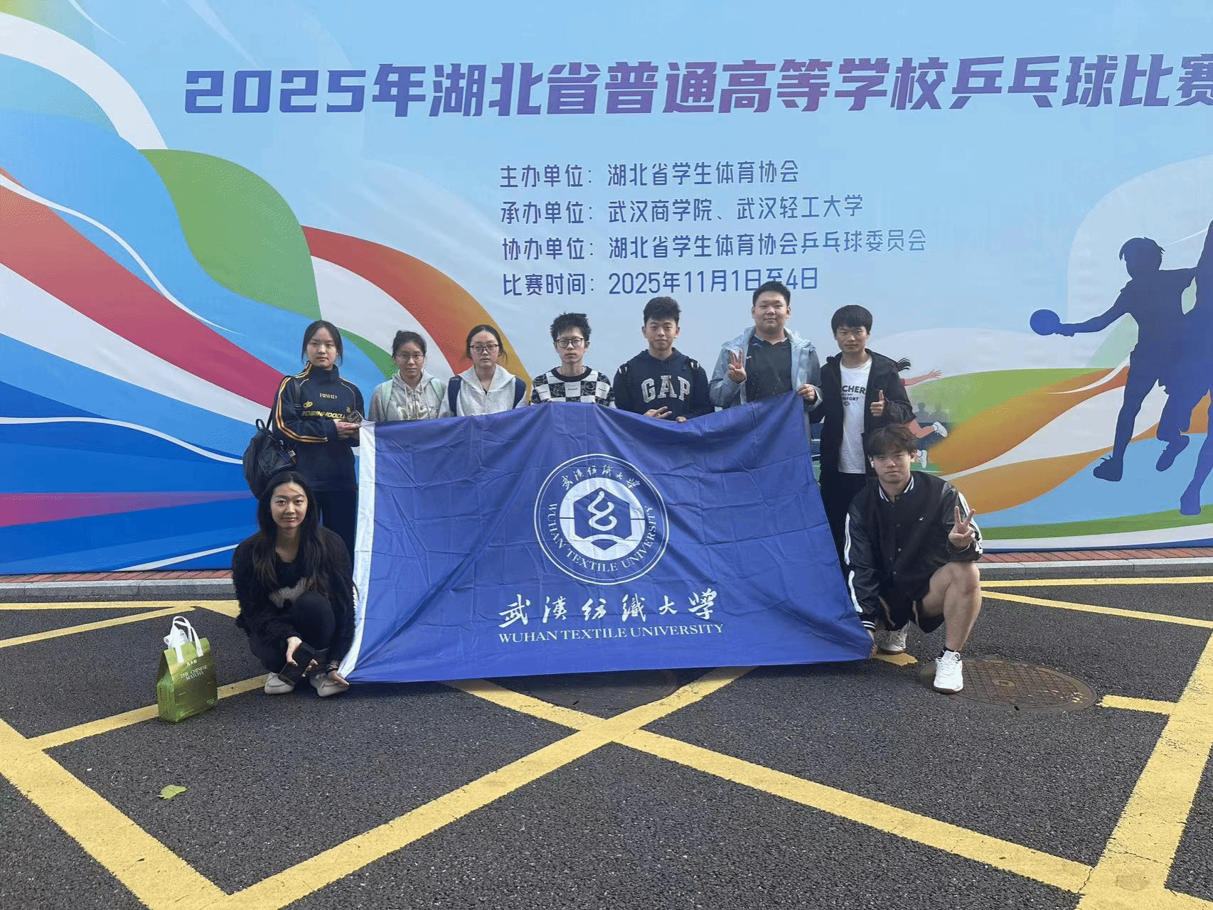 近日,湖北省普通高等学校乒乓球比赛在武汉商学院圆满落下帷幕。武汉纺织大学乒乓球队在领队杨志强,教练陈宁、刘梓轩和杨鹏的带领下出征赛场,以精湛的球技与顽强的拼搏精神尽显纺大学子的青春风采。