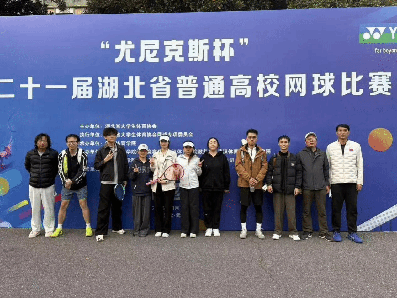 2025 年 11 月 15 日至 16 日,“尤尼克斯杯”第二十一届湖北省普通高校网球比赛在激烈角逐中落下帷幕。我校网球代表队携青春锐气出征,与省内多所高校的顶尖选手同场竞技。最终,我校女子团体一路过关斩将,斩获女子甲组比赛第五名的优异成绩;男子团体虽未晋级前八强,但在赛场上展现出的拼搏精神同样令人动容。本次比赛由张雷老师和黄波老师带队,参加了甲组(普通组)男子团体和甲组(普通组)女子团体两个集体项目的比赛。